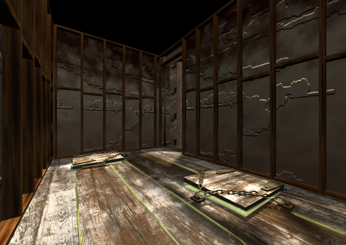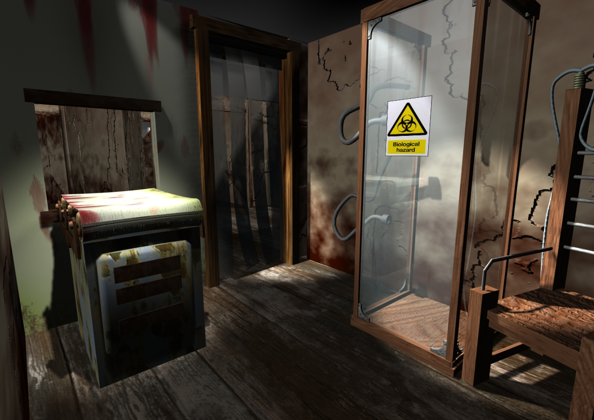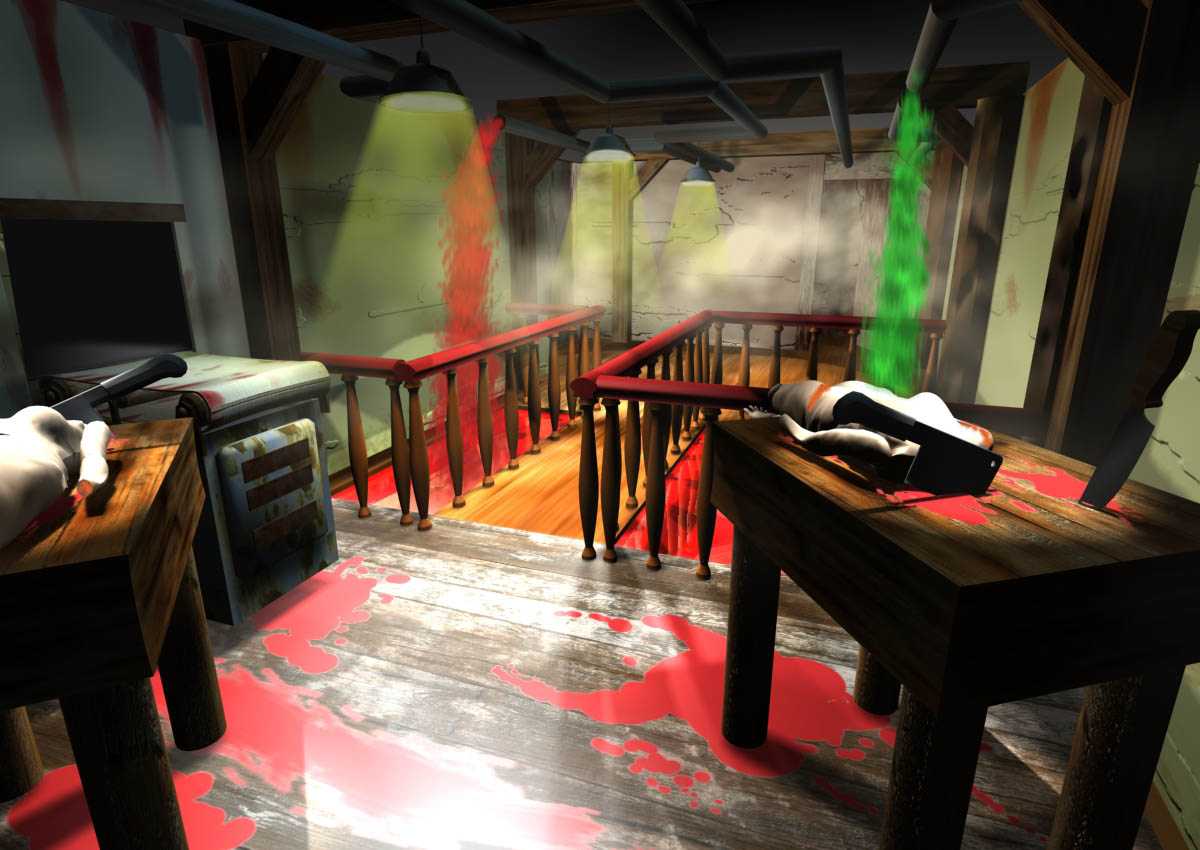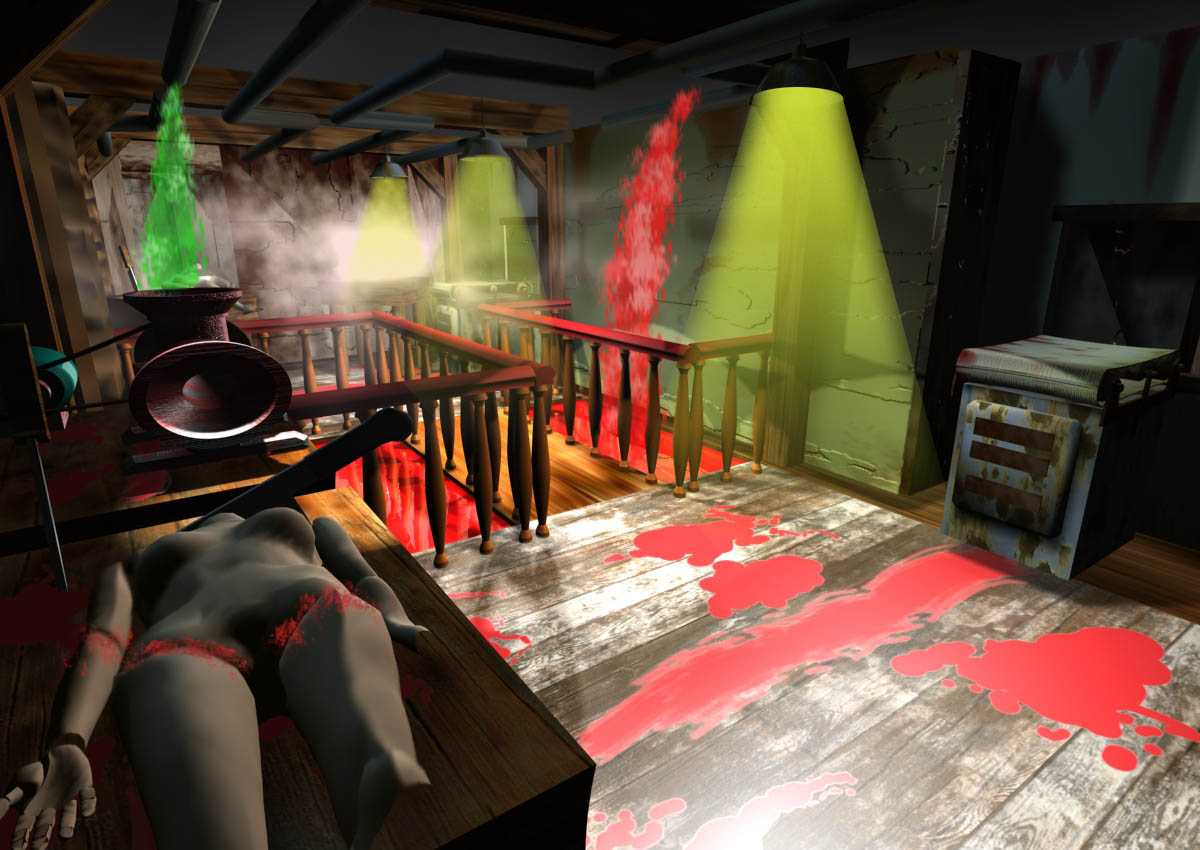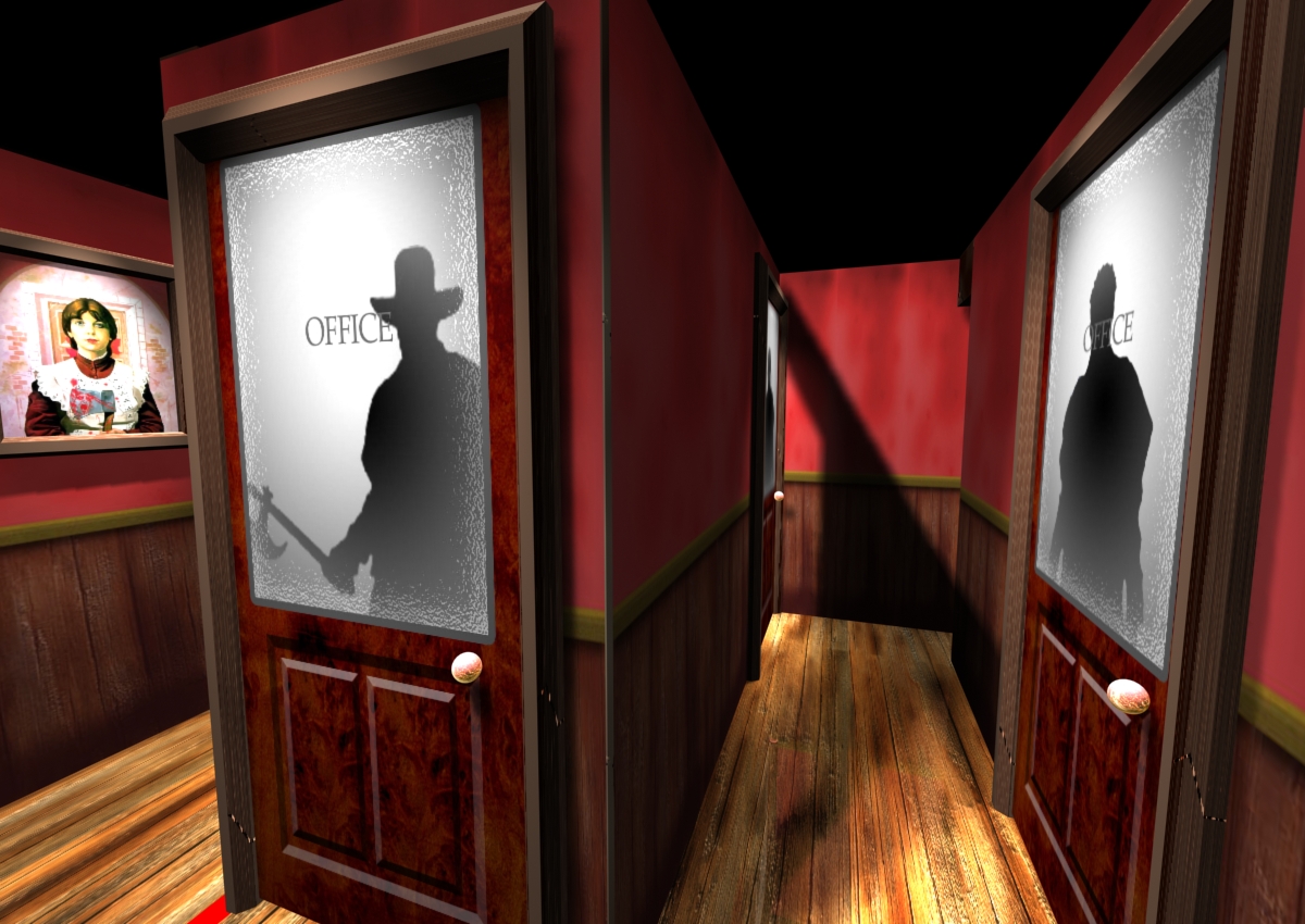 3D renderings of a proposed haunted attraction, designed by Leonard Pickel and John Burton.